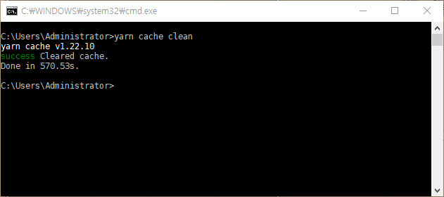 아래 명령으로 캐시를 삭제했다. (참조: https://yarnpkg.com/cli/cache/clean)