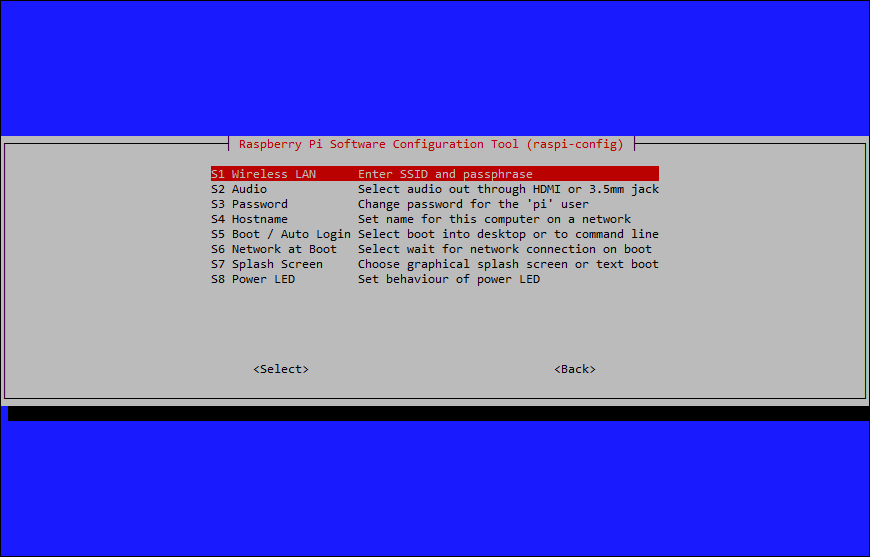 raspi-config 명령으로 설정 화면을 열고, System option - Wireless LAN 항목을 선택한 뒤 연결할 WiFi 정보를 입력한다. (SSID 및 Password)