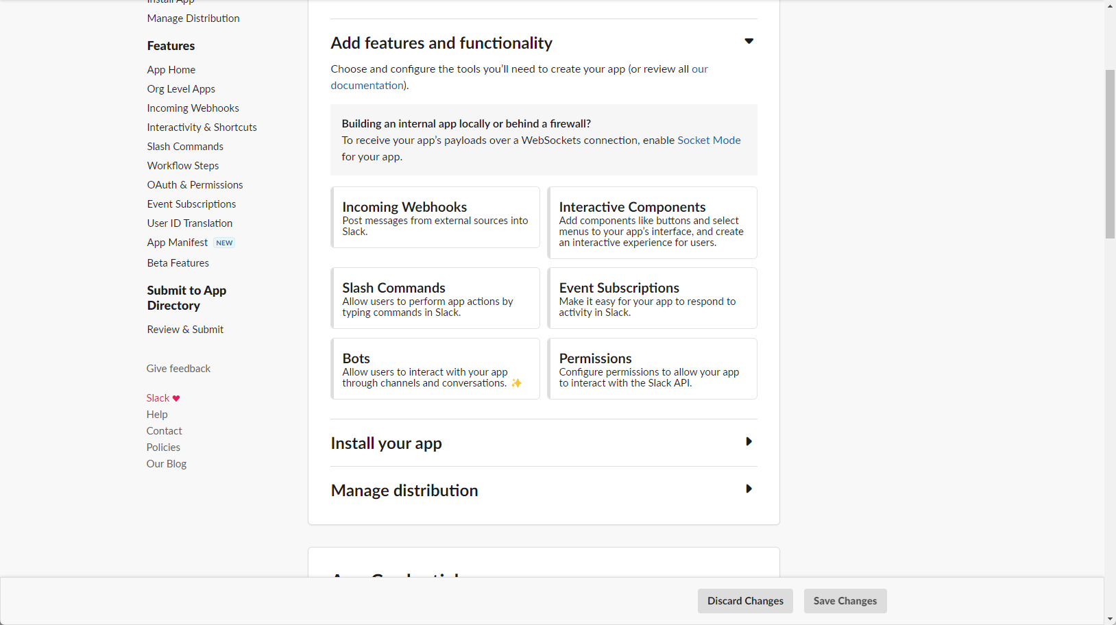 - 앱을 생성하면 "기본 정보" 페이지로 리디렉션된다. 여기에서 "클라이언트 ID", "클라이언트 암호" 및 "확인 토큰"과 같은 "앱 자격 증명"을 찾을 수 있다. 이러한 자격 증명은 앱을 인증하고 Slack API와 상호 작용하는 데 사용된다.