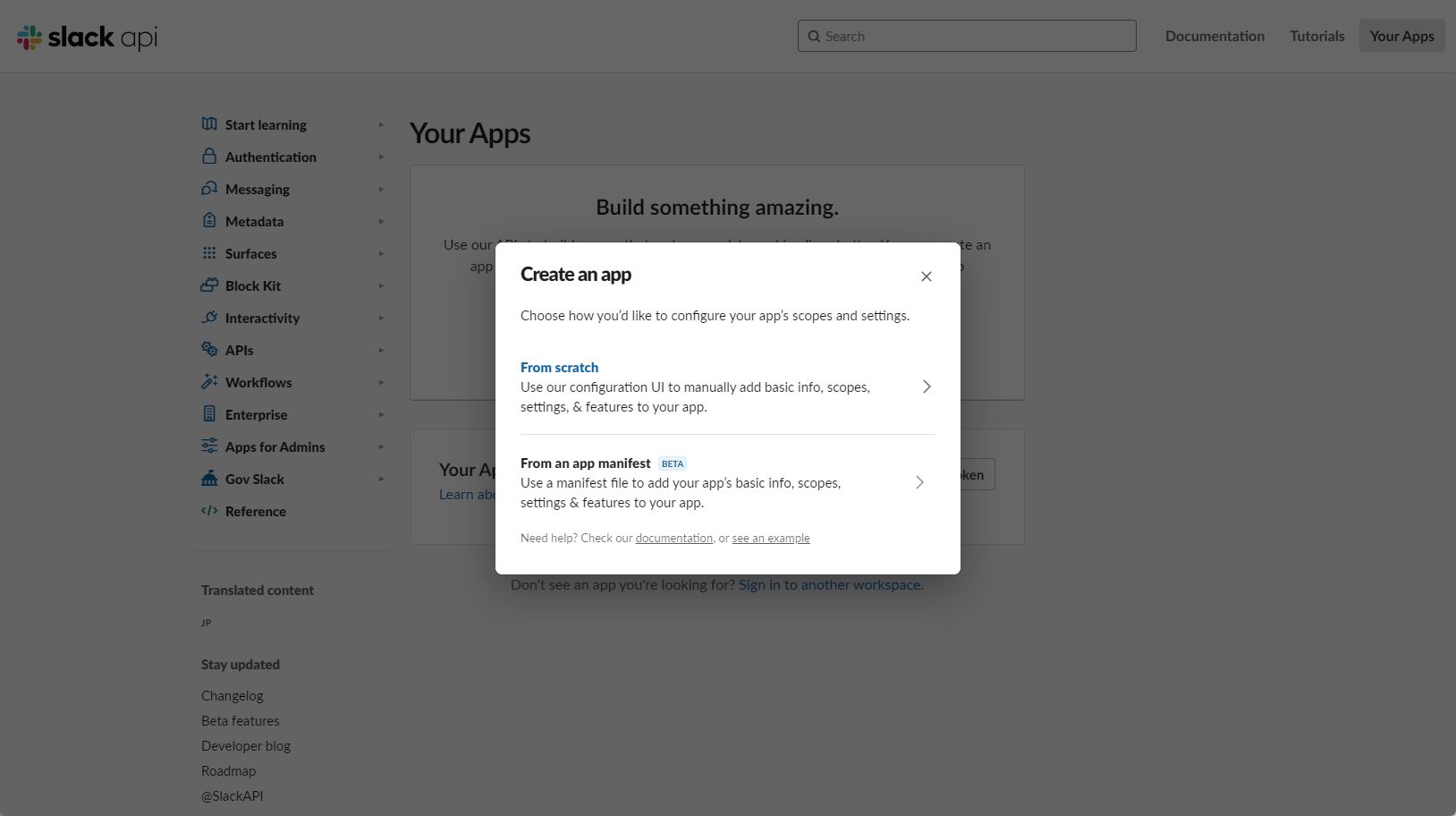 ChatGPT를 Slack과 통합하는 첫 번째 단계는 새 Slack 앱을 만드는 것이다. 새 Slack 앱을 만들려면 아래 단계에 따라 진행한다.