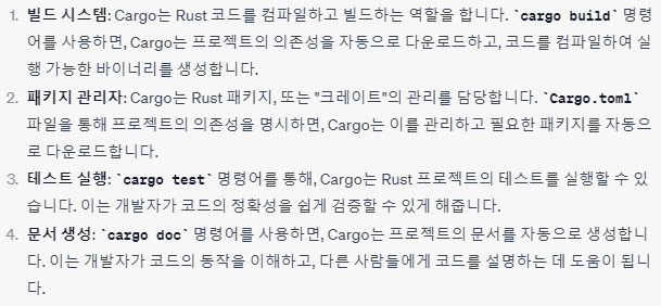 다음과 같은 기능을 제공하여 Rust의 생산성을 크게 향상시켜준다고 한다. (by ChatGPT)