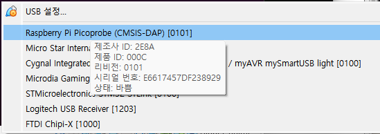 참고로, picoprobe.uf2 설치 후에는 다음과 같이 인식되는 이름이 조금 바뀐다.
