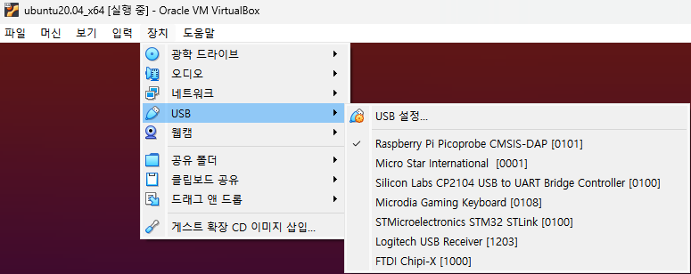 WSL에서 USB 포트를 사용하도록 설정하는 방법이 있었는데, 굳이 건드리고 싶지 않아서 구성해뒀던 VM을 사용했다.