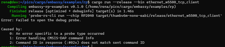 embassy라는 Rust 기반 프레임워크를 알게 되었고, 이 프레임워크에서 W5500-EVB-Pico 라이브러리와 예제를 제공하고 있어 테스트를 해보기로 했다.