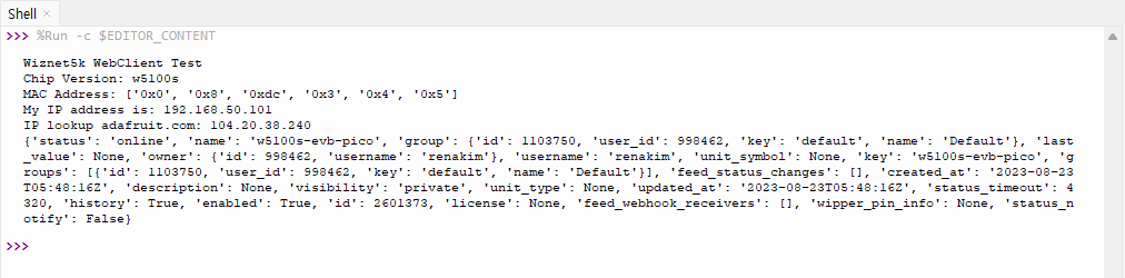 wiznet5k에서 지원하는 예제 중 aio라는 항목이 있어서 보니, Adafruit에서 지원하는 API가 있었고 http(Non-SSL)를 지원하고 있었다.