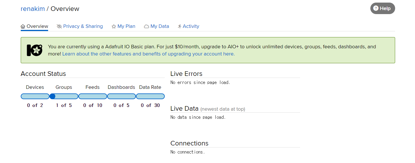 생성된 피드에 들어가보면, 다음과 같이 피드 안에서 데이터를 누적시킬 수 있는 형태로 나타난다.